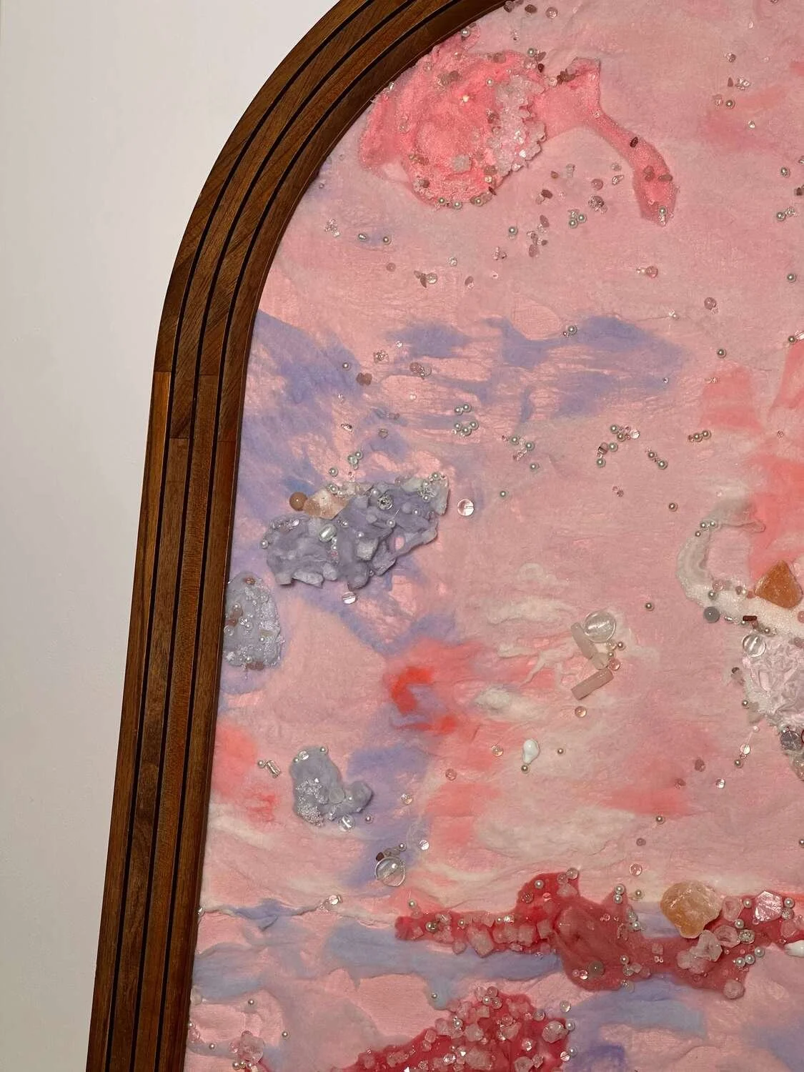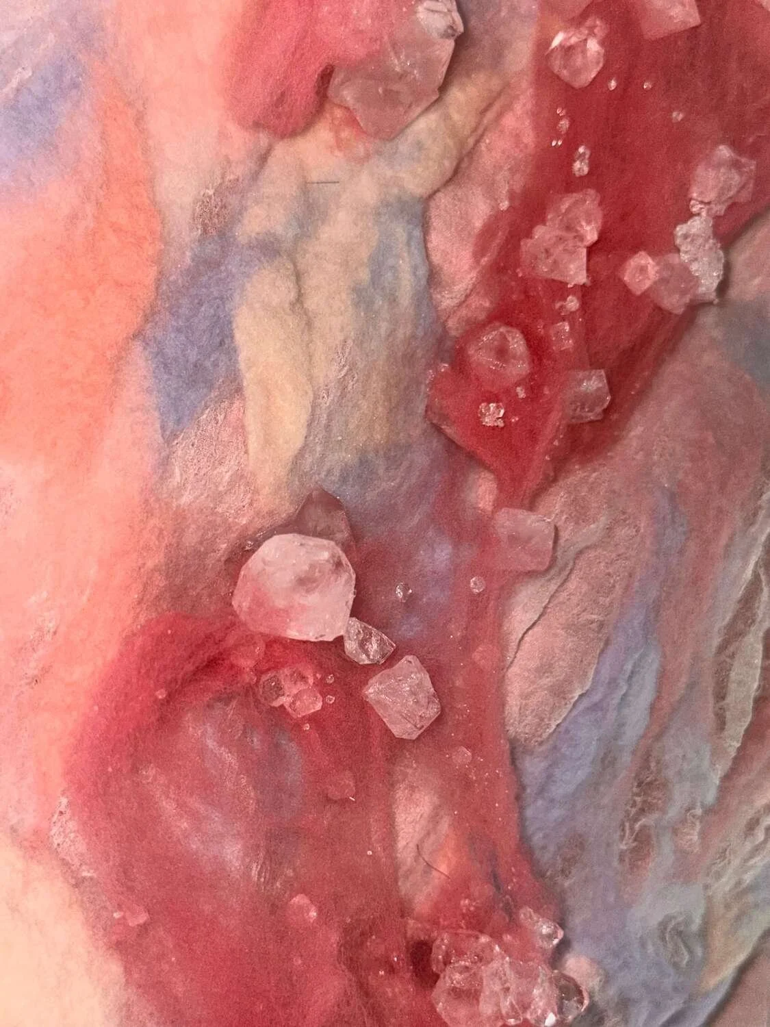 I especially like to study the variations of materials, and also focus on the emotional connection between the work and people. I often combine soft and hard materials, such as wool and crystals, to make the works both gentle and powerful.